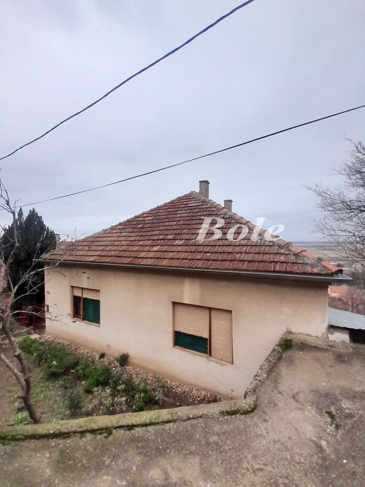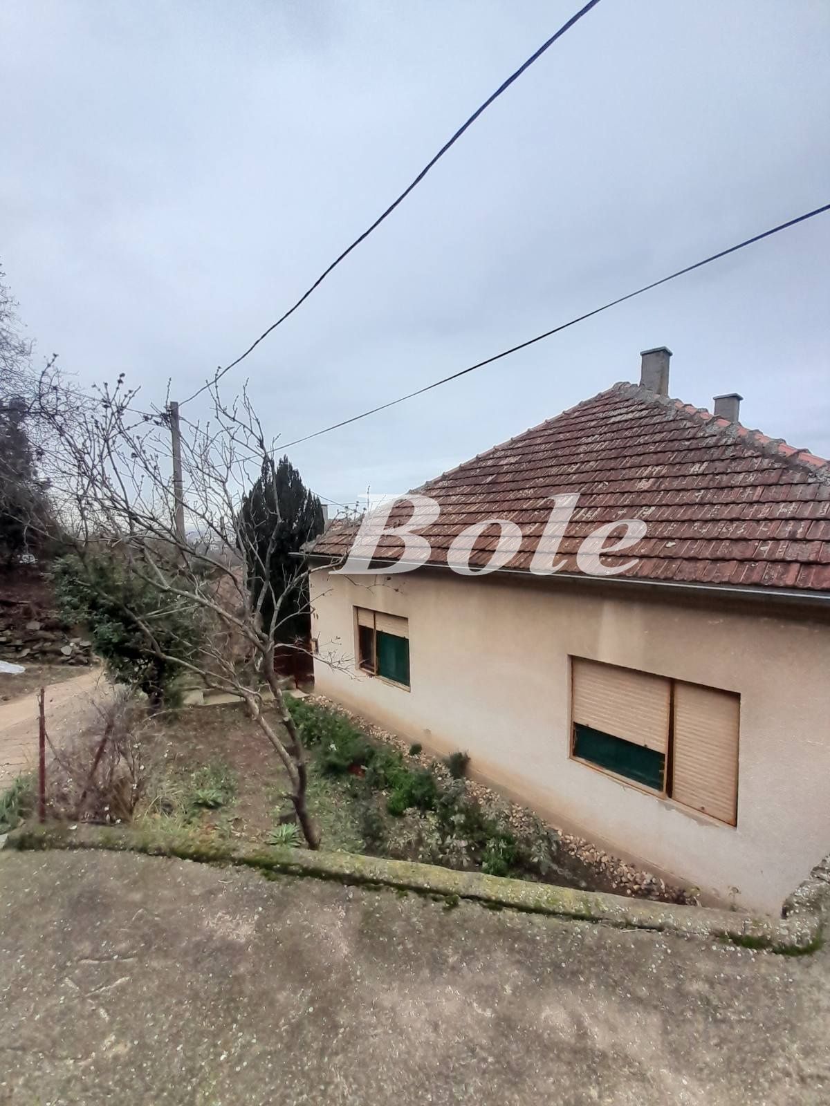 Prizemna kuća sa suterenom – podnožje brega. Stambeni deo: 103kvm, sve na placu od 333kvm. Čvrsta gradnja sa betonskom pločom. Opis: hodnik, 2 spavaće sobe, dečija soba, dnevni boravak, kupatilo i terasa dužinom cele kuće. Kuhinja sa trpezarijom se nalazi u suterenu. Na podovima: laminat, brodski pod i pločice. Grejanje: plinsko. Stolarija: drvena sa roletnama i komarnicima. Garaža i pomoćni objekti. Fasada. Cena: 60.000 eura – nije fiksno